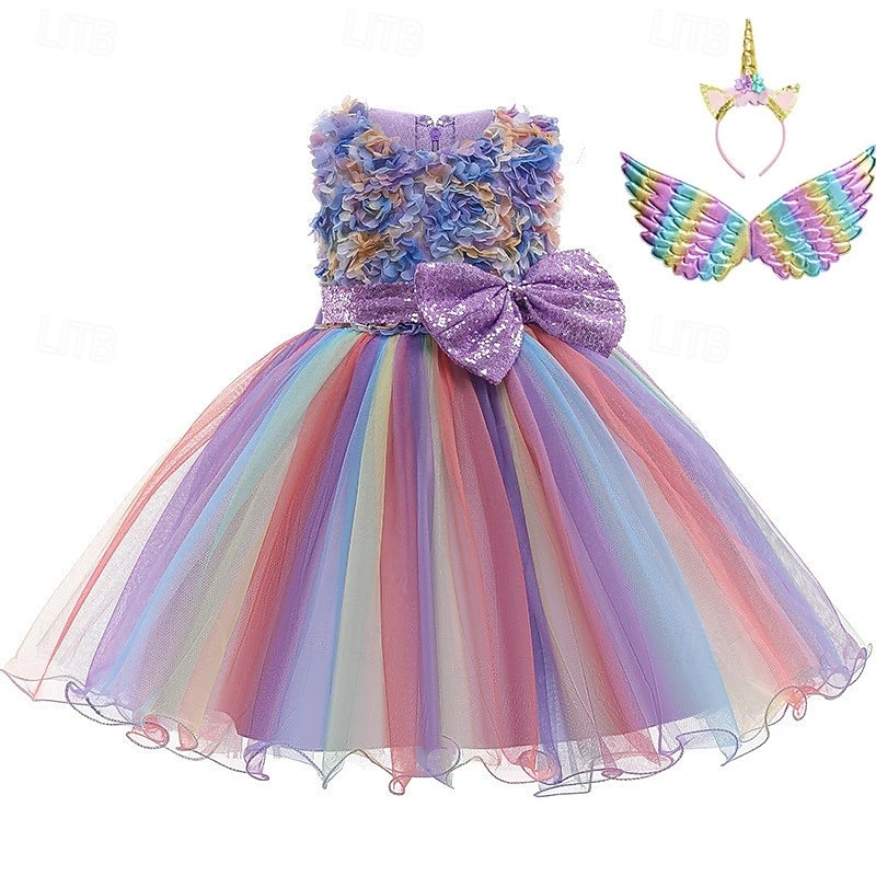 More information about Kids Girls' Dress Cosplay Dress Princess Dress Unicorn Flower Sleeveless Performance Party Cosplay Costumes Mesh Cute Adorable Costume Polyester Midi Party Dress Tulle Dress Spring Fall 4 years+ Pink
