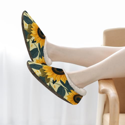 HOT ! Yellow Sunflower Floral Slippers for Women Slipper Socks Soft Fuzzy House Slippers Shoes for Indoor Bedroom, Winter Cozy Christmas Gifts
