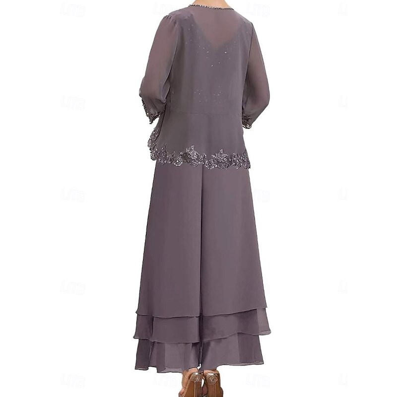 Dress Sets Mother of the Bride Dress Wedding Guest Elegant Simple V Neck Floor Length Polyester Long Sleeve with Embroidery 3