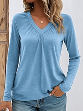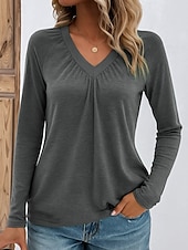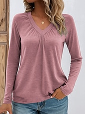 More information about Women's Blouse Solid Color Stylish Casual Long Sleeve V Neck Regular Tops Daily Pink Blue Green Gray Spring Fall Winter