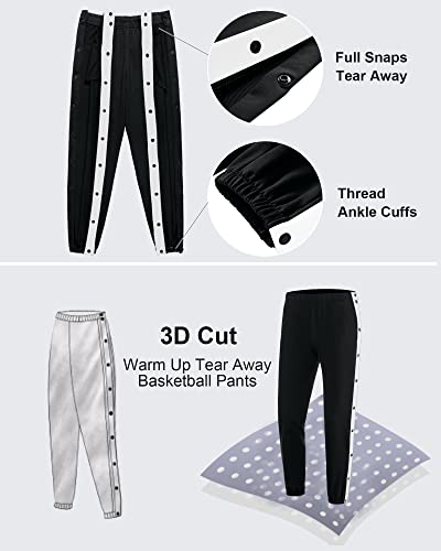 • 🏀 Full Snaps Tear Away: Double-sided full tearing design, the number of buttons can be unfastened according to the needs of the activity, mens jogger sweatpants can be easily put on and taken off, and the movement is free. Warm up pants can be done while exercising and ripped off quickly before a game.