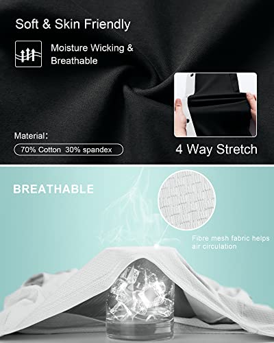 • 🏀 Moisture Wicking & 4 Way Stretch: Soft and skin-friendly cotton material, breathable and not stuffy, wicking sweat in time. In particular, 30% spandex is added to the cotton fabric to increase elasticity, prevent noise, and be more suitable for sports