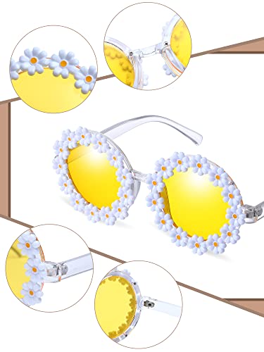 Maitys 8 Pairs Daisy Sunglasses Disco Festival Sunglasses Fun Flower Sunglasses for Women Retro Floral Round Shape Sunglasses 6