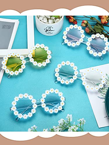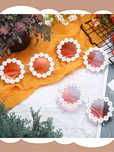 Maitys 8 Pairs Daisy Sunglasses Disco Festival Sunglasses Fun Flower Sunglasses for Women Retro Floral Round Shape Sunglasses 5