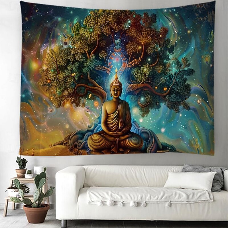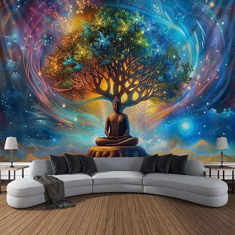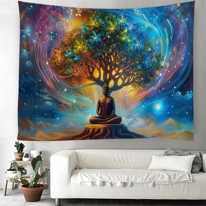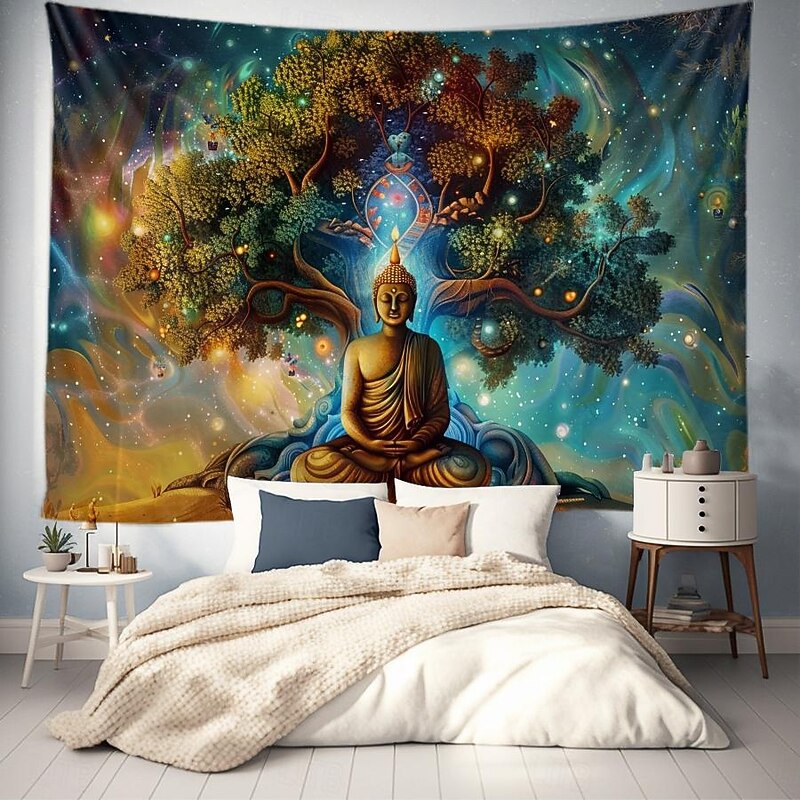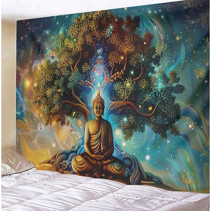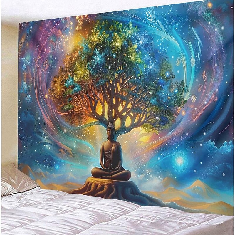 HOT ! Boho Buddha Tree of Life Hanging Tapestry Sacred Wall Art Large Tapestry Mural Decor Photograph Backdrop Blanket Curtain Home Bedroom Living Room Decoration