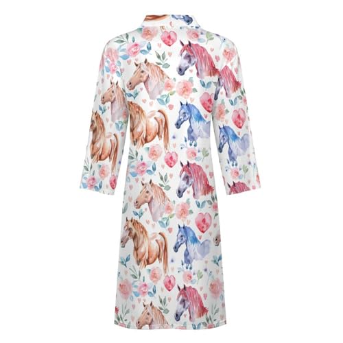 Watercolor Horses Hearts Flowers Funny Men's Robe Soft Lightweight Bathrobe Long-sleeve Spa Robes 3