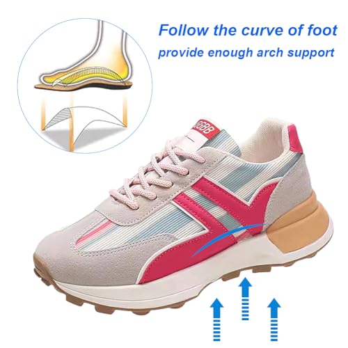• Breathable Upper---PADGENE Women sneakers use breathable sardine cloth and suede leather patchwork upper, circulation ventilation, not stuffy feet, allow your feet to breathe freely when running or walking.
