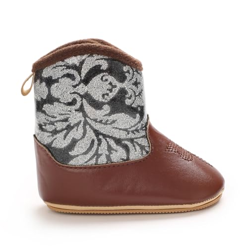 IWIHMIV Baby Cowboy Boots Infant Toddler Western Soft Sole Non Slip Booties Girls Round Toe Mid Calf Boots 1