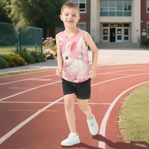 Bolaz Boys Athletic Quick Dry Tank Top Sleeveless Workout T Shirts Age 11-15,Rose and Bunny 1