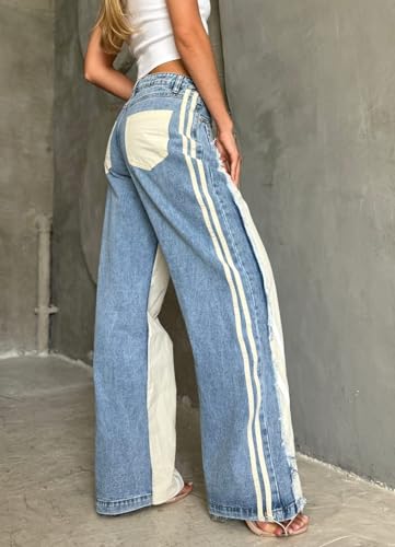 More information about Womens High Waisted Straight Wide Leg Jeans Stretch Casual Patchwork Baggy Y2k Streetwear Pockets Denim Pants