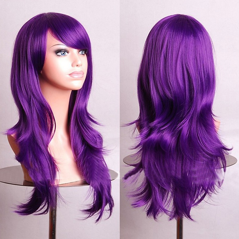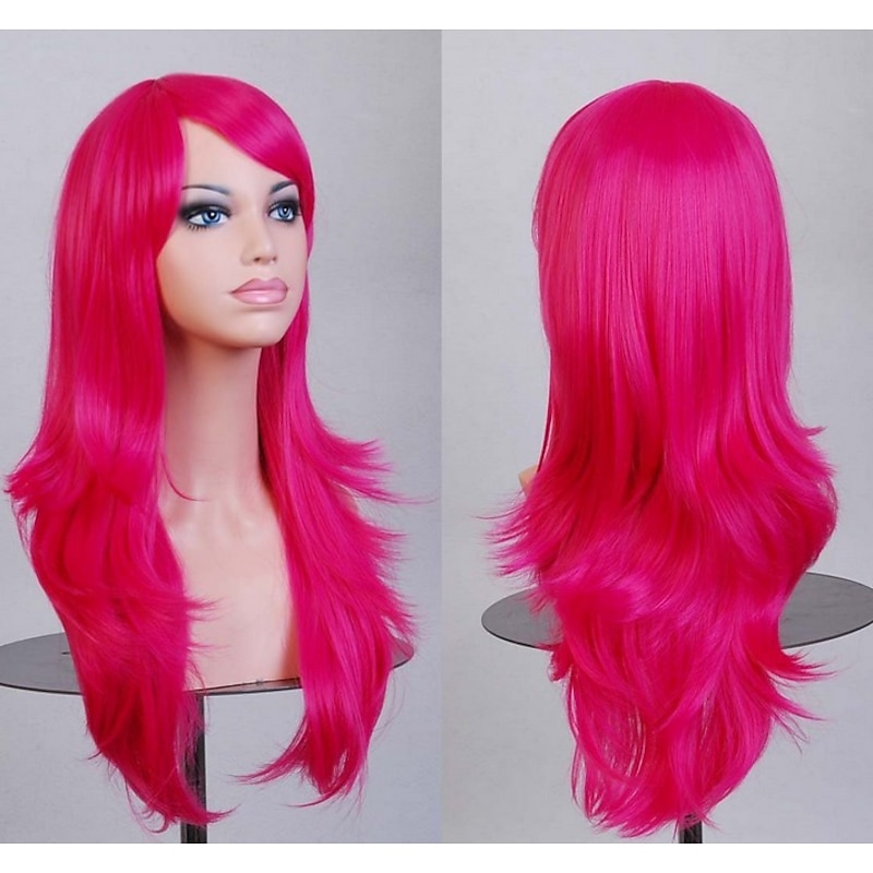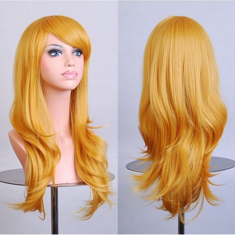 More information about Synthetic Wig Curly Natural Wave With Bangs Wig Long Light golden Silver grey Brown Blonde Pink Synthetic Hair 28 inch Women's Anime Cute Party Red Blue Halloween Wigs