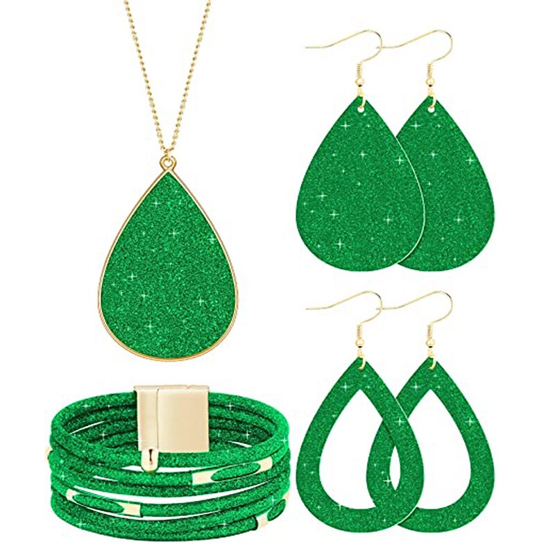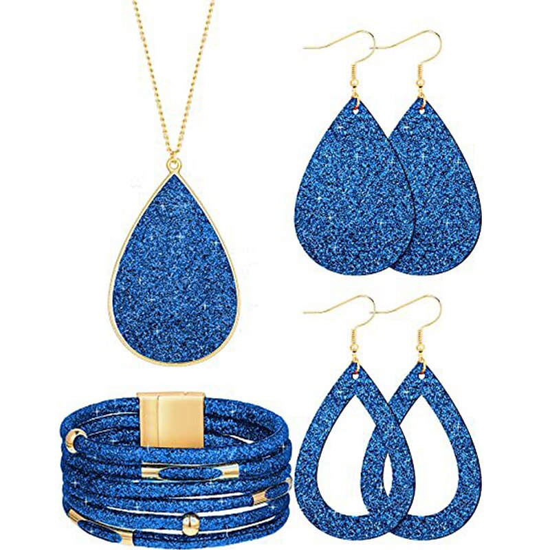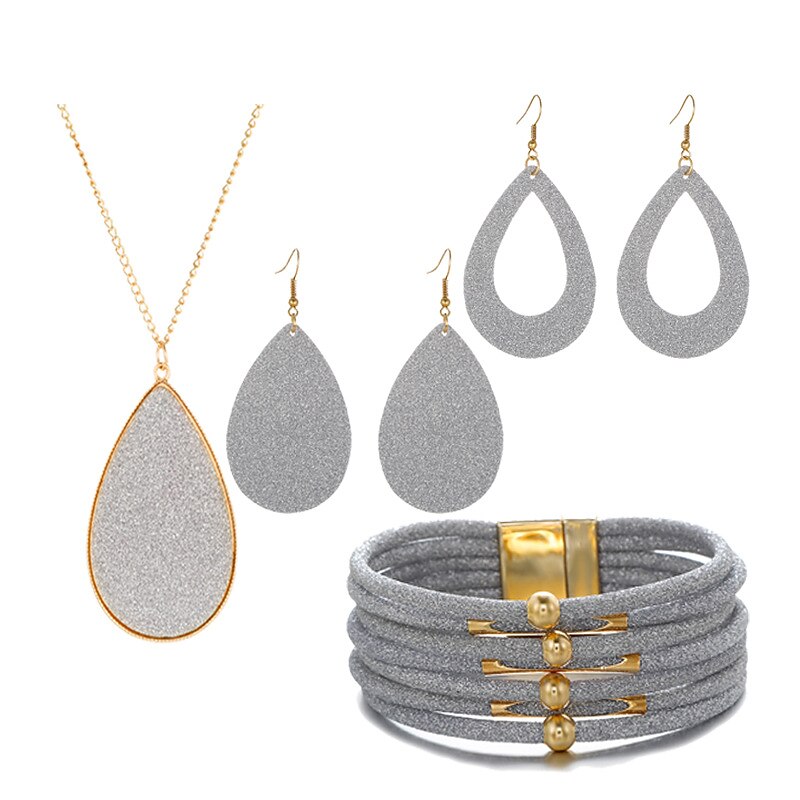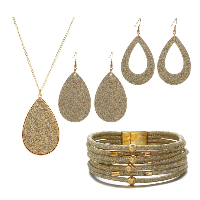 Jewelry set Leather Gold Powder Alloy Necklace Earrings Necklace Bracelet Combination Set 3