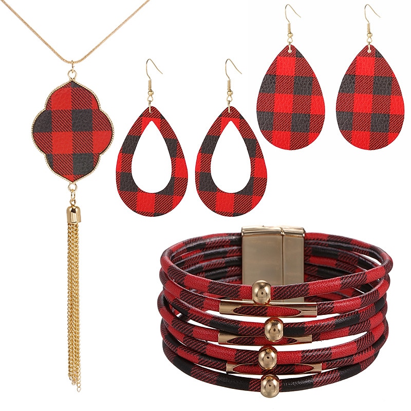 Jewelry set Leather Gold Powder Alloy Necklace Earrings Necklace Bracelet Combination Set 1