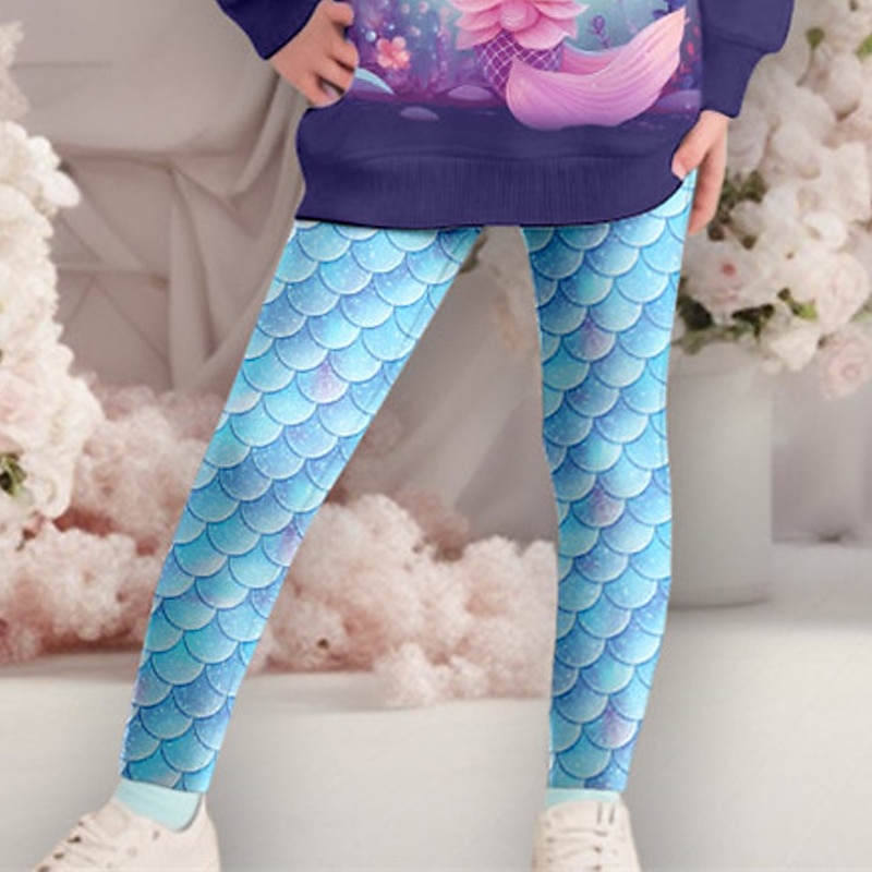 More information about Girls' 3D Mermaid Sweatshirt & Legging Set Pink Long Sleeve 3D Print Fall Winter Active Fashion Daily Kids 3-12 Years Crew Neck Outdoor Vacation Date Regular Fit