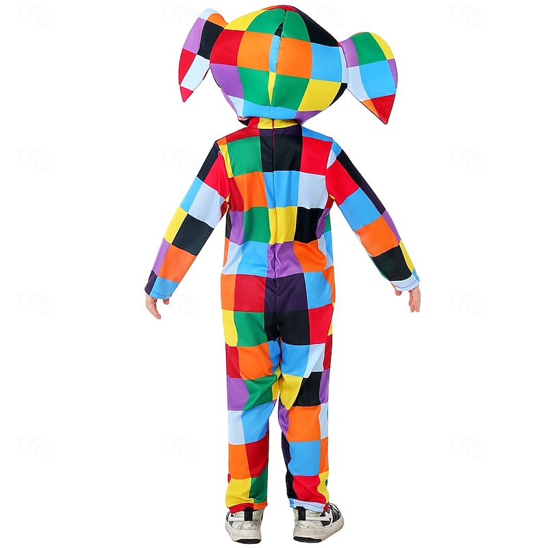 HOT ! Elmer the Patchwork Elephant Elmer Jumpsuit Onesie Costume Storybook Characters Movie Cosplay for Boys Girls' Kid's Halloween Carnival World Book Day Performance Educational Dress Up