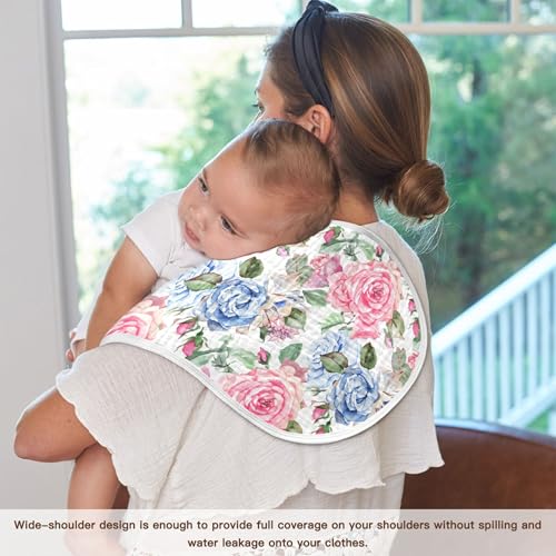 xigua Watercolor Roses Muslin Baby Burp Cloths Set of 1, Super Soft & Absorbent Burping Rags, Cotton Burp Clothes Shower Gift for Newborn, Baby Girls and Boys 3