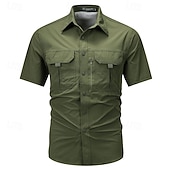 More information about Men's Shirt Casual Shirt Button Up Shirt Cargo Shirt Black Navy Blue khaki Army Green Beige Short Sleeve Plain Vacation Daily Clothing Apparel Fashion Casual Comfortable