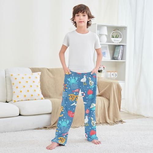 HOT ! ZZXXB Sea Sailboat Crab Boys Long Pants Soft Trousers Elastic Waist Kids Lounge Bottoms with Pockets S-XL