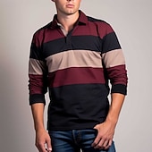 More information about Men's Striped Rugby Polo Shirts Long Sleeve Polo Shirts Collar Business Casual Formal Outdoor Dailywear 3D Print Buttons Spring Fall Winter Maroon