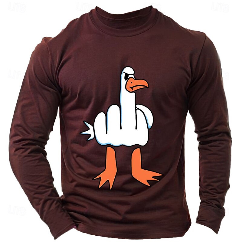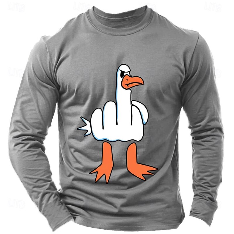 Mens Long Sleeve Tee with Irreverent Middle Finger Goose Graphic Print for Sarcastic Humor