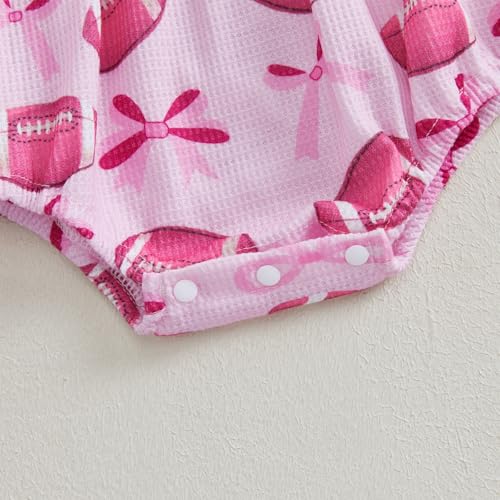 FYBITBO Summer Newborn Baby Clothes For Girls Cute Strap Romper Halter Jumpsuit Bodysuit Sleeveless Outfits Infant Clothing (Bow Football Print-Pink, 6-12 Months) 3