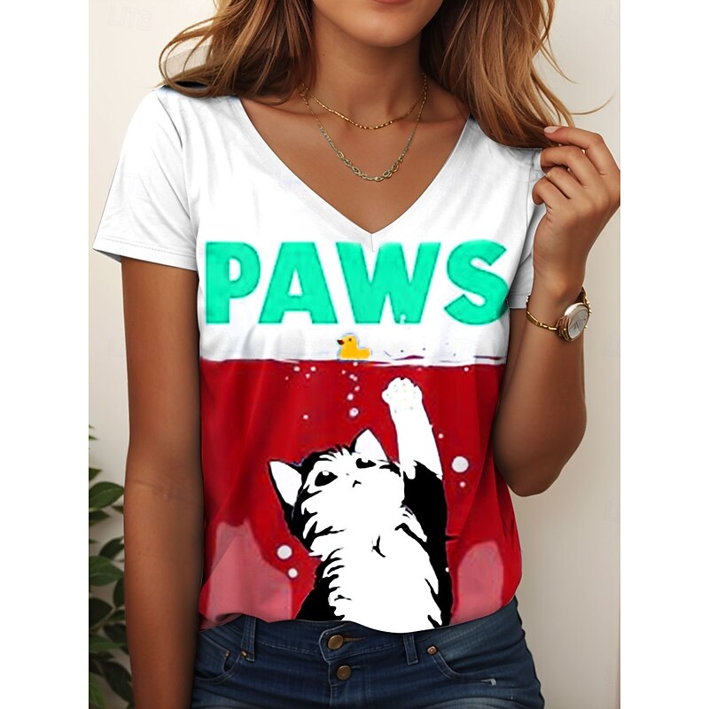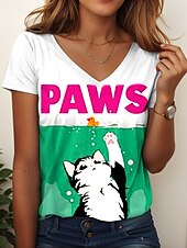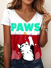 More information about Women's T Shirt Graphic Animal Letter Vintage Stylish Classic Short Sleeve V Neck Regular Tops Daily Weekend Print Red Blue Purple Green Summer Spring