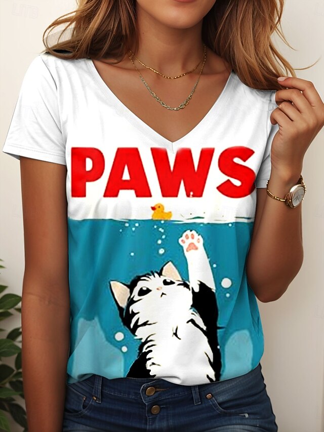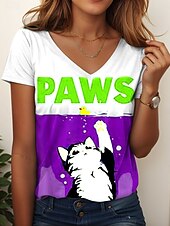 HOT ! Women's T Shirt Graphic Animal Letter Vintage Stylish Classic Short Sleeve V Neck Regular Tops Daily Weekend Print Red Blue Purple Green Summer Spring