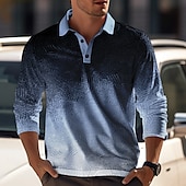More information about Men's Geometric Waffle Polo Shirts Golf Shirt Long Sleeve Polo Shirts Collared Shirts Casual Vacation Wear Formal Wear Festival Wear Buttons 3D Print Spring Fall & Winter Black Blue Orange