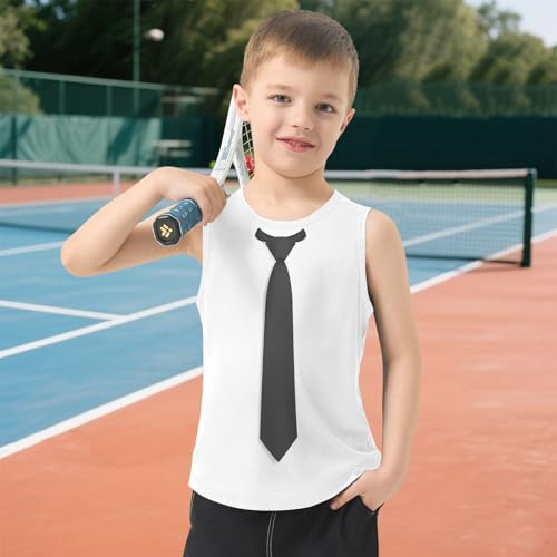 Boys Tank Top Shirts Black Tie Sleeveless T-Shirts Crew Neck for Kids Clothing Children 5