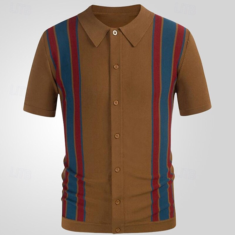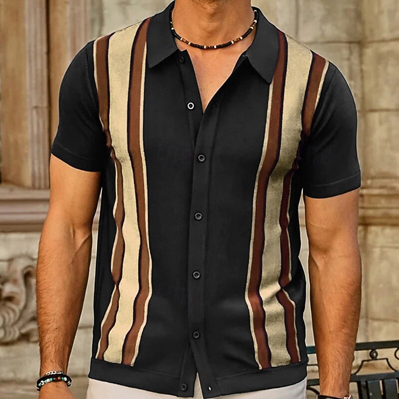 Men's Button Up Polos Golf Shirt Casual Sports Lapel Short Sleeve Fashion Basic Color Block Patchwork Buttons Summer Black Navy Blue Brown Button Up Polos 11