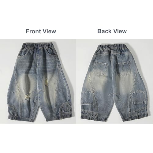 More information about Baggy Jeans Kids Ripped Panel Stitch Loose Fit Wide Leg Jeans Hip Hop Streetwear Baggy Pants Boys Distressed with Holes