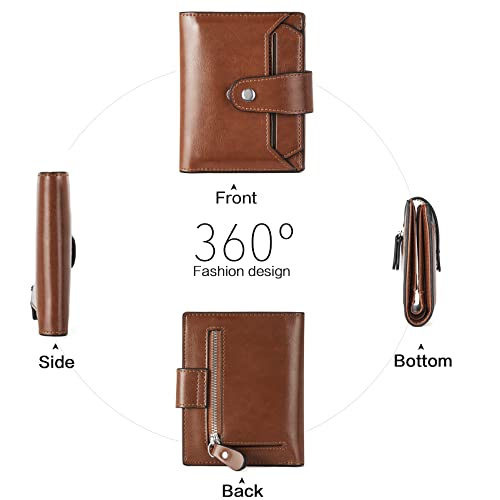 BROMEN Small Wallets for Women RFID Blocking Leather Bifold Purse Zipper Coin Pocket Credit Card Holder with ID Windows Brown 5