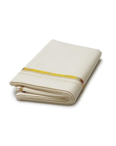 Kolakeer™ Men's Cotton 8x4 Zari Dhoti Angavastram Set - 3.6 Mtrs Veshti Mundu and 1.8 Mtrs Angavastram with Gold Zari Border 5