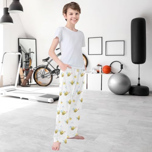 Boy's Pants Fly Bee Flower Jogger Pants Elastic Waist Long Bottoms Trousers with Pockets 6-14 Years 4