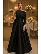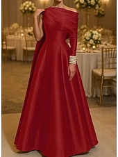 More information about Red Formal Cape Dress Ball Gown Elegant Dress Formal Wedding Floor Length Long Sleeve Off Shoulder Stretch Satin with Pleats Pearls 2025