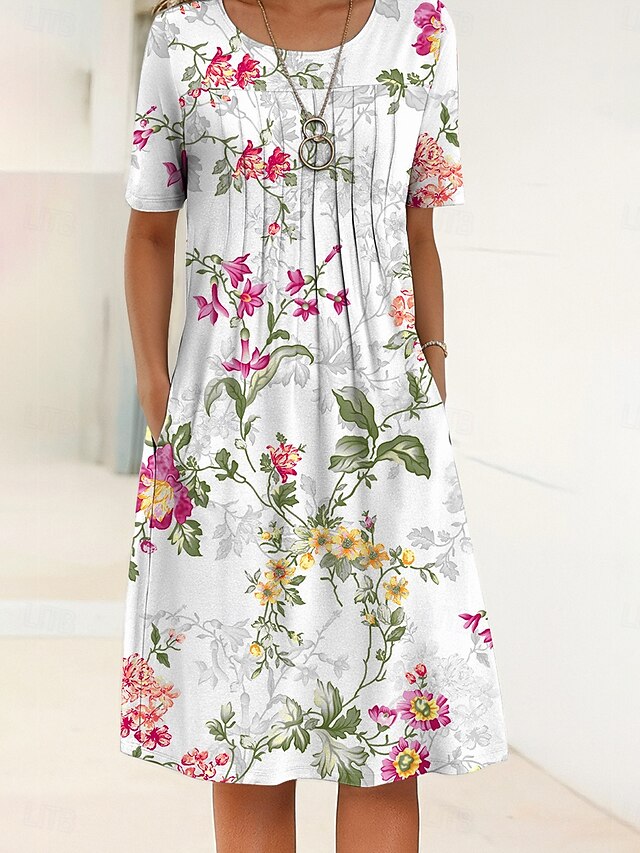 Women's Midi Dress Shift Dress Summer Dress Vacation Casual Daily Regular Fit Floral Graphic Half Sleeve Crew Neck Red Blue Purple Green Summer 10
