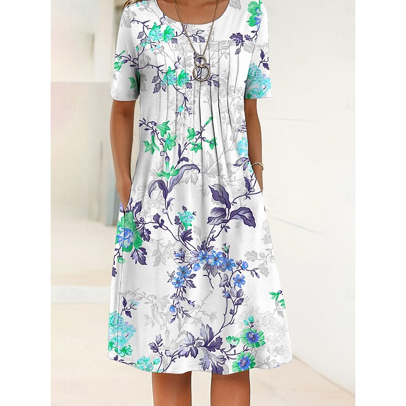 More information about Women's Midi Dress Shift Dress Summer Dress Vacation Casual Daily Regular Fit Floral Graphic Half Sleeve Crew Neck Red Blue Purple Green Summer