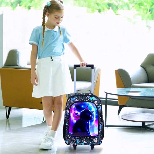 AGSDON Kids Luggage for Girls, Cute Planet Cat Rolling Suitcase Wheels for Children Toddler 7