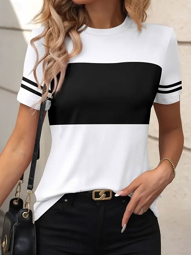 HOT ! Women's T Shirt Graphic Striped Vintage Stylish Classic Short Sleeve Crew Neck Regular Tops Daily Weekend Print Black White Summer