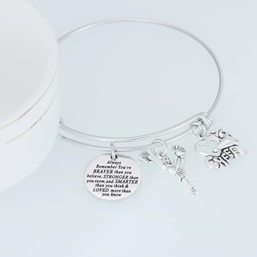 • 💗💗Cheer Charm Bracelet Cheerleading Gifts You Are Braver Than You Believe Bangle Bracelet Cheerleaders Cheer Coaches Or Team💗💗-----Engraved with sentences “Always remember You’re BRAVER than you believe, STRONGER than you seem, and SMARTER than you think & LOVED more than you know."As an inspirational cheer gift to show your team spirit.A perfect Admiration gift for your coach to appreciate her skills.