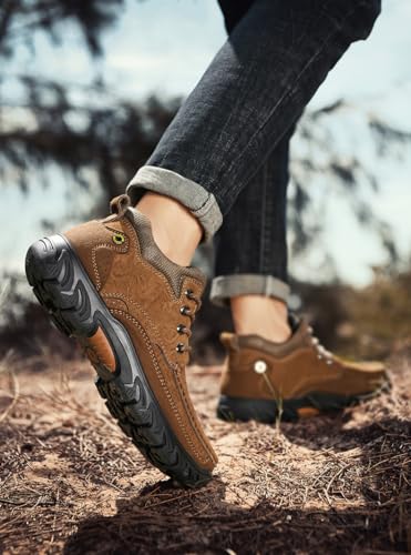 Men's Waterproof Hiking Boots Lace-up Lightweight & Breathable Mid Ankle Work Shoes Moc Anti Slip Trekking Shoes Casual Climbing Hiker Outdoor Boots 7