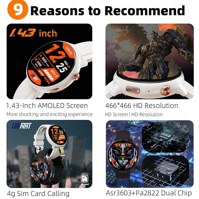 LOKMAT SKY GT Smart Watch 1.43 inch 4G LTE Cellular Smartwatch Phone 3G 4G Bluetooth Pedometer Call Reminder Activity Tracker Compatible with Android iOS Women Men GPS Long Standby Hands-Free Calls 11