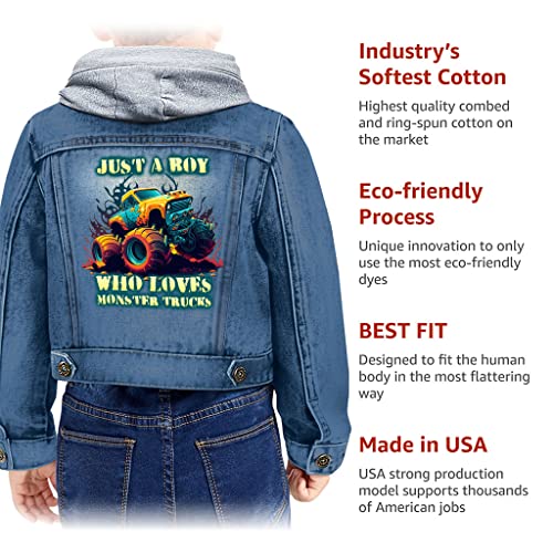 Just a Boy Toddler Hooded Denim Jacket - Trucks Fan Jean Jacket - Cartoon Denim Jacket for Kids 4