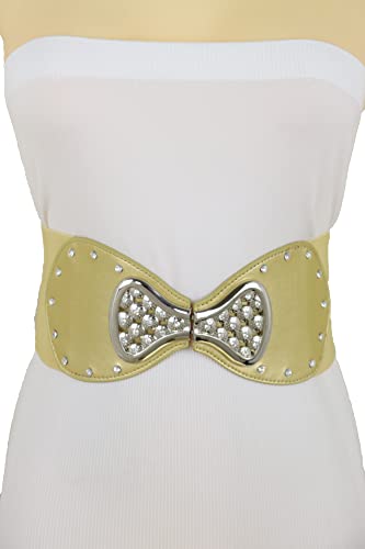 TrendyFashionJewelry Women Elastic Waistband Belt Hip High Waist Bow Tie Ribbon Buckle Fit Size S M Gold 6