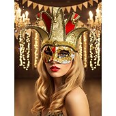 $32.99 - Women's Venetian Jester Mask with Gold Trim and Bells, Baroque Style Masquerade Costume Accessory for Halloween Party 2025. Shop for cheap Halloween Accessories online? Buy at lightinthebox.com on sale today!