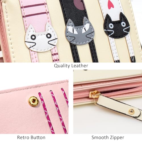 KOTORA Small Cute Wallet for Women Girls Short Bifold Clutch Bag Mini Cat Embroidery Zip Around Card Holder Coin Purse (Beige) 6