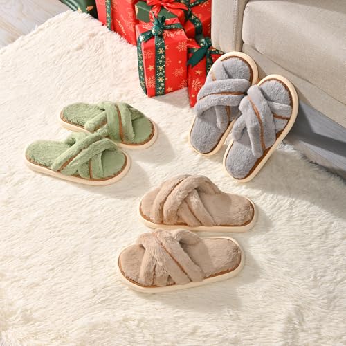 Women's Cross Band Slippers with Cozy Comfy Lining, Plush Warm Furry Open Toe House Shoes, Non-Slip Sole Slippers for Women 4