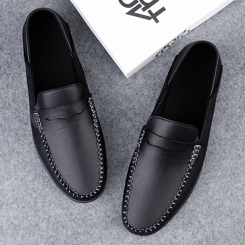Highlights [Fabric] Crafted with high-quality synthetic materials, these men's loafers offer durability and a classic look. The synthetic upper materials ensure a lightweight feel, perfect for spring and summer wear. [Fit] These loafers feature a streamlined slip-on design that provides both comfort and style. The moccasin-style stitching along the sides and top enhances the sophisticated look, while the interior lining ensures a comfortable fit throughout the day. [Design Highlights] The loafers are designed with a solid-colored pattern for a timeless style. The TPR and TPU outsole materials offer excellent grip and stability, making them ideal for everyday outdoor activities. Additionally, they are waterproof, ensuring that your feet stay dry in various conditions. [Occasions] Perfect for daily wear and outdoor activities, these loafers are versatile enough to be worn on both casual and semi-formal occasions. Whether you're on a leisurely walk or attending a casual event, these loafers provide both charm and functional comfort. [Size] Available in a range of sizes from US6-6.5 to US11.5, these loafers are designed to fit standard sizes. It's recommended to select your usual size for the best fit.
