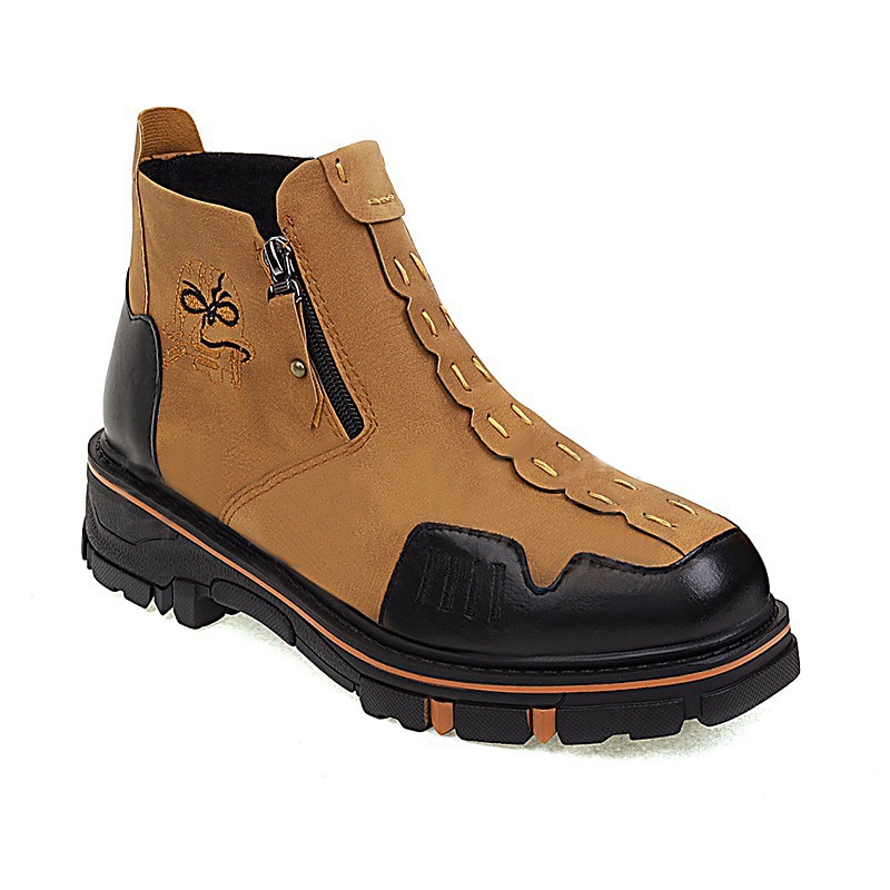 : Crafted from high-quality PU leather, these men's ankle boots offer a sophisticated faux leather finish, boasting durability and a sleek appearance. The rich, brown upper is complemented by a black toe cap and heel for a stylish contrast.