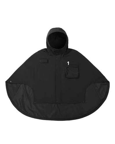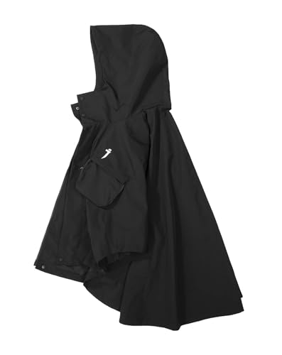 • This Japanese techwear hooded cape jacket blends a pullover hoodie with a flowing cape for a futuristic urban look, perfect for streetwear fashion